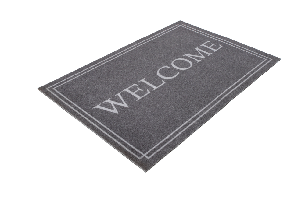 Tapis personnalisé conçu en polyamide, inscription welcome, à rapporter sur le sol